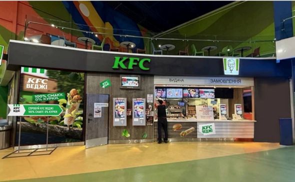 У київському ТРЦ Blockbuster Mall 29 вересня запрацював перший в Україні вегетаріанський ресторан KFC. Меню там повністю складається з рослинних альтернативах до м'яса