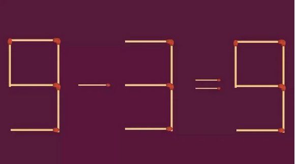 Завдання таке: перетворіть рівняння 9-3=9 у правильне, прибравши лише одного сірника. Ви маєте необмежену кількість часу. Але ідеально, якщо вдасться розгадати за хвилину.