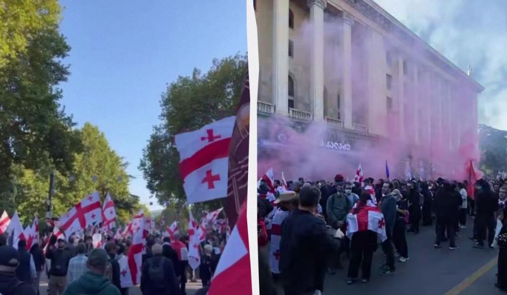 По завершенню голосування лідери правлячої партії оголосили про перемогу і привітали прихильників. Зі свого боку частина опозиції вийшла на мітинг у центрі Тбілісі, заявивши про "мирне повалення влади". Протестувальники намагалися зайняти президентський палац.