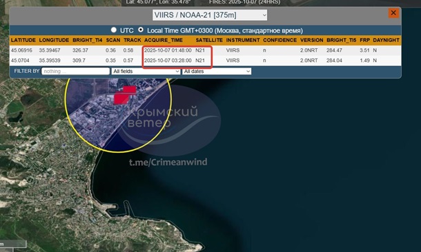 У Феодосії (тимчасово окупований Крим) продовжує горіти нафтоналивний термінал. Про це повідомляє Телеграм-канал Крымский ветер з посиланням на супутникові знімки.