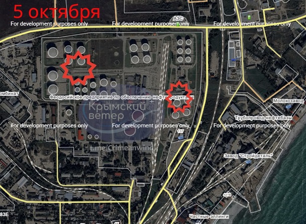 Найпотужніше вогнище пожежі спостерігається в північно-східній частині нафтобази. Пожежа на об'єкті почалася після вибухів в ніч з 5 на 6 жовтня.