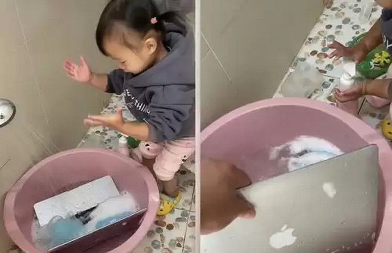 Саме тому дівчинка вирушила у ванну, налила у таз воду і почала начисто відмивати ноутбук із милом.