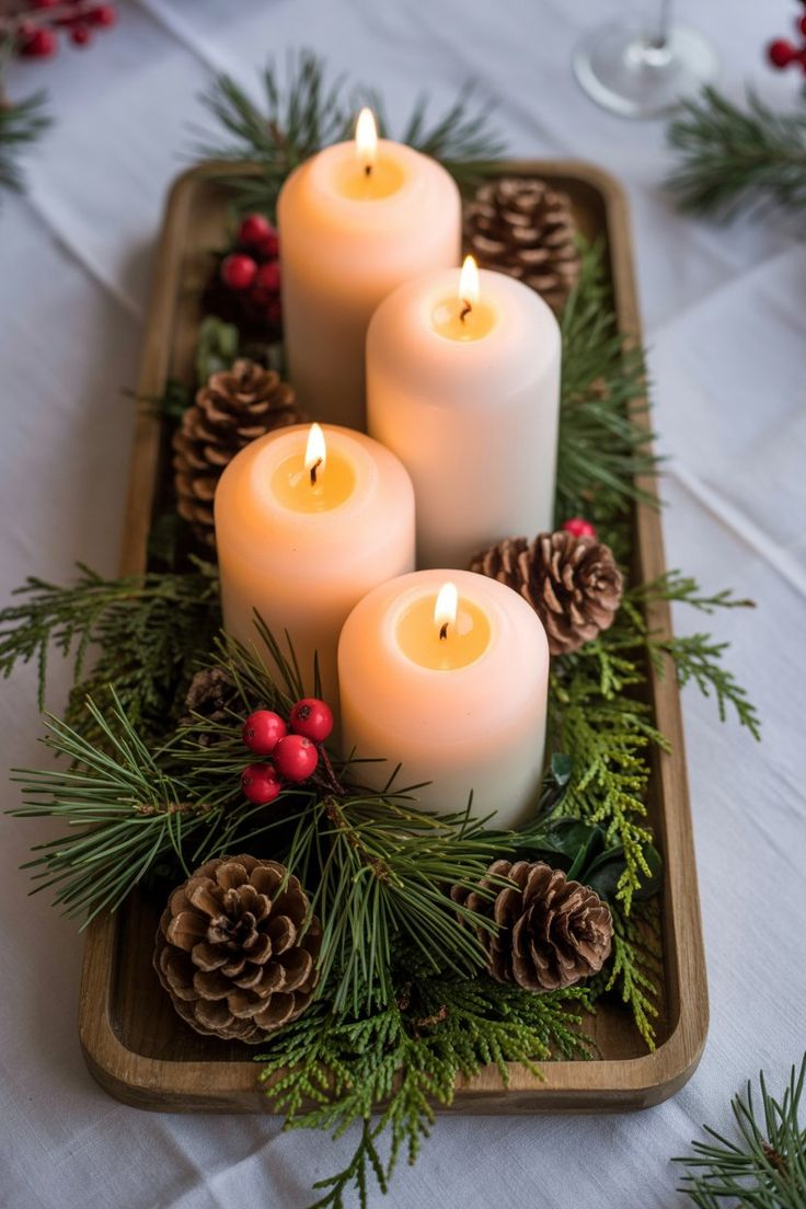 Хвойні гілки або невеличкі вінки дарують природний аромат та асоціації з лісом.