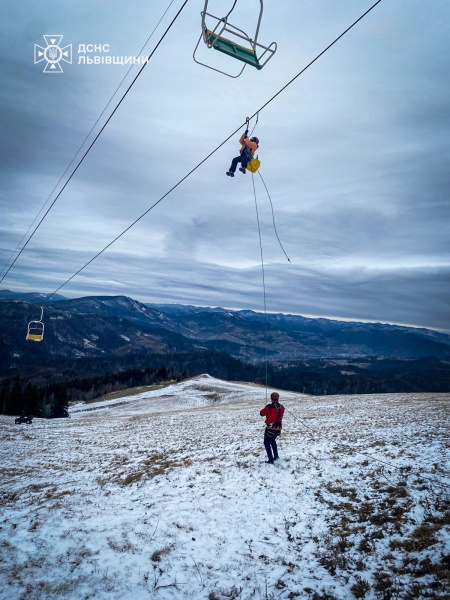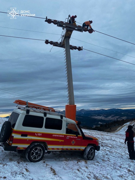За даними ДСНС, гірські рятувальники завершили роботи на горі Захар Беркут, де зупинився крісельний підйомник.