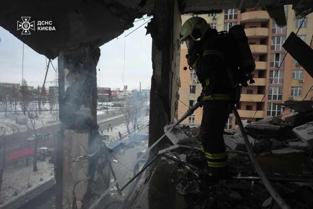 "У столиці зафіксовано влучання, пошкоджено житлові будинки. Під завалами одного з них рятувальники ведуть пошук людини. В окремих районах Києва та області відсутні електропостачання й опалення. Триває ліквідація пожеж. На частині енергетичних об'єктів уже працюють ремонтні бригади, на інших персонал перебуває в укриттях і розпочне роботи після відбоїв повітряної тривоги, - написав він.