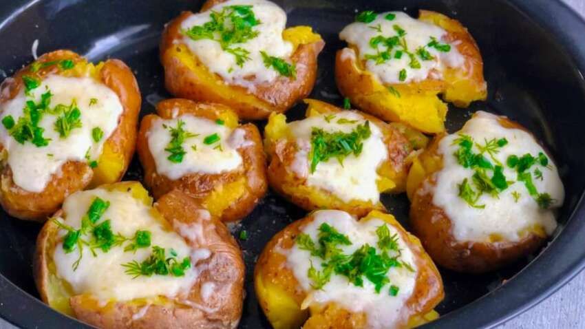 На вигляд – як страва з дорогого ресторану, на смак – ще краще. Насправді ж це звичайна картопля, приготована так, що її важко впізнати. Запечена розчавлена картопля з розплавленим сиром і зеленню стала справжнім кулінарним хітом завдяки поєднанню простоти та ефектного результату.