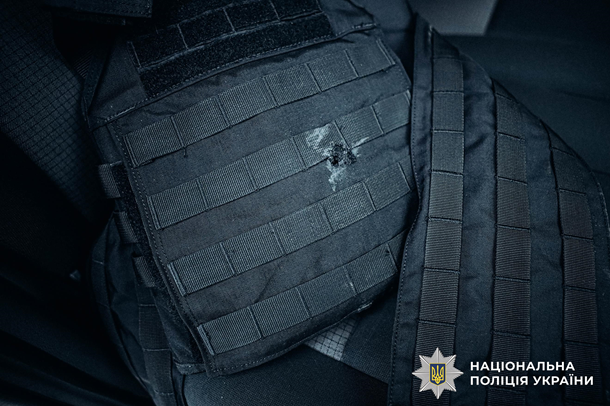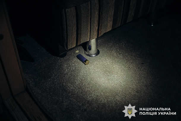 Екіпаж у складі двох поліцейських прибув на місце негайно. З чоловіком 1956 року народження почали проводити профілактичну бесіду. Коли його втихомирили, той раптово вийшов до іншої кімнати та повернувся з рушницею, після чого різко націлився у бік невістки та внука. Поліцейські зреагували миттєво. Один з поліцейських підскочив до зловмисника, прикривши жінку з дитиною. У цей момент фігурант здійснив постріл.Дріб застряг у бронежилеті поліцейського. Поліцейські затримали чоловіка та викликали слідчо-оперативну групу.