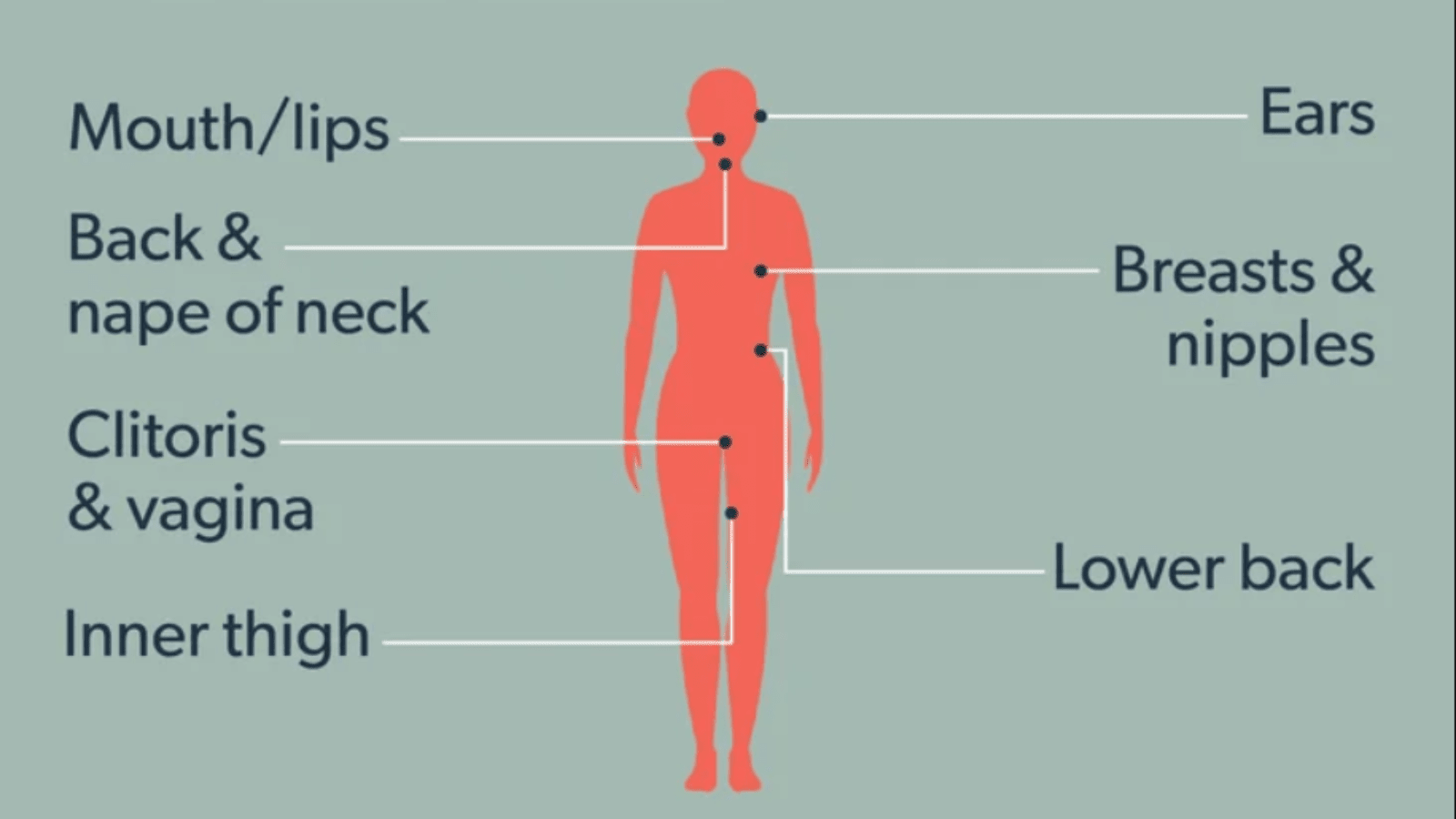 Насправді ж, це не “завірений” перелік; такою зоною може бути будь-яка частина тіла залежно від індивідуальної чутливості та вподобань. Всі люди різні, як і їх тіла. Тому одній жінці більше сподобається лоскотання в зоні живота і легкі дотики до нього, а інша відчуватиме збудження від вібрації або тиску на поперек, і це нормально. Але є деякі зони, які працюють з найбільшою вірогідністю.