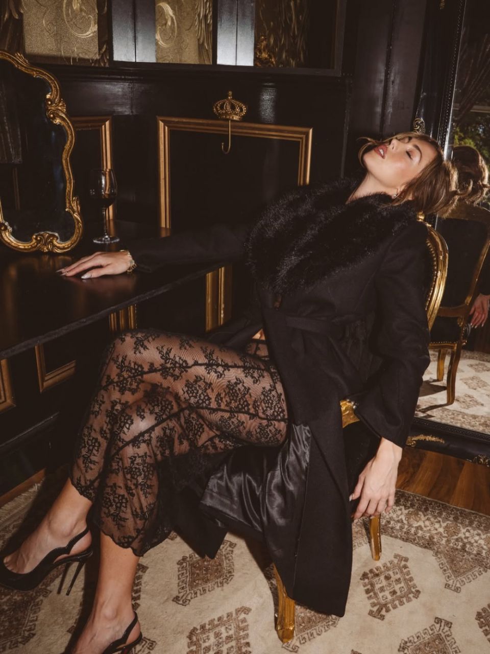 Крім цього, Гоуп позувала у довгій спідниці з мережива і пальто з хутряним коміром.