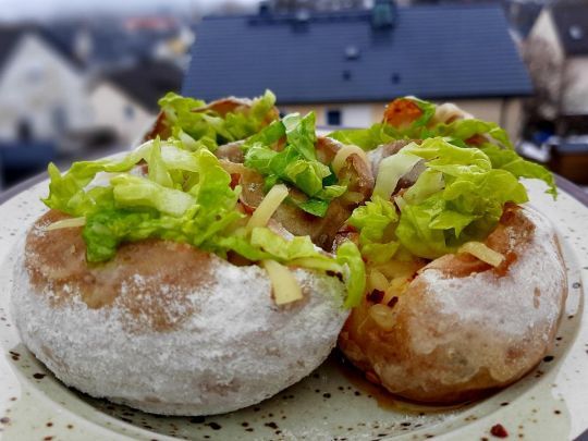 — Приготуємо смачну запечену картоплю, — каже Елла Іванова. — Добре вимиту картоплю у шкірці обмакуємо в борошні з сіллю. Кладемо у фольгу. Запікаємо при 180 °C приблизно 30−35 хвилин — до готовності. Час залежить від розміру картоплі. Потім картоплю розрізаємо і додаємо масло та сир. Можна додати овочі, зелень, ковбасу — все, що вам подобається.