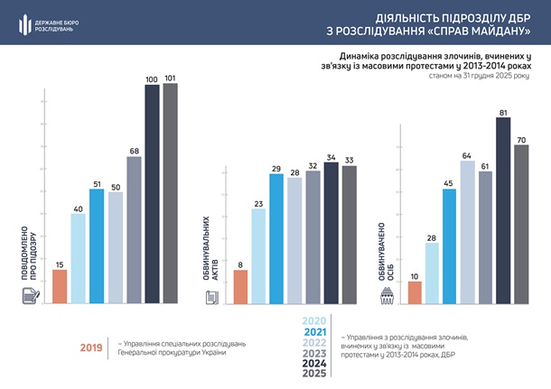 Їм інкримінують організацію та сприяння умисним убивствам і заподіянню тілесних ушкоджень учасникам акцій протесту.