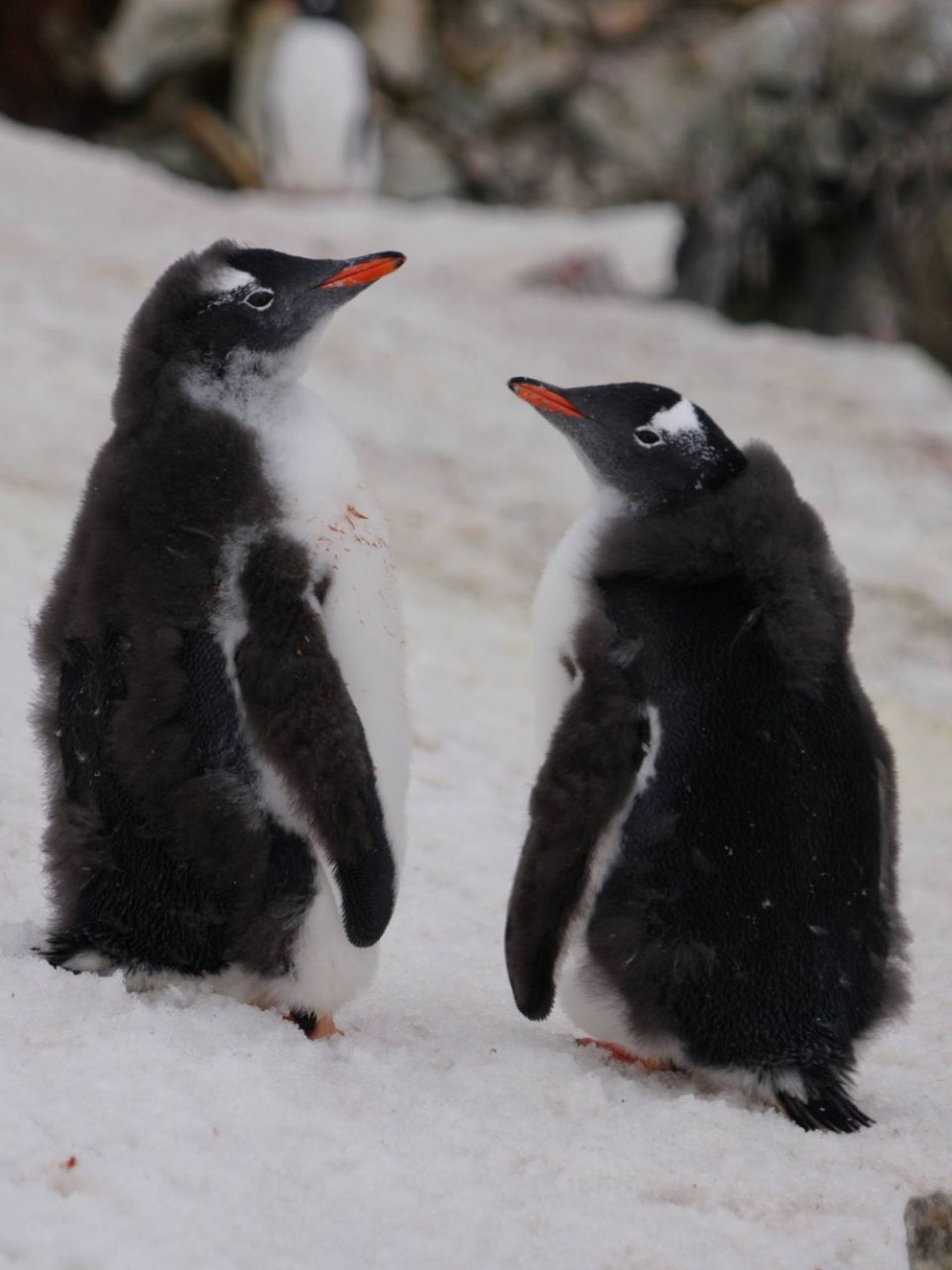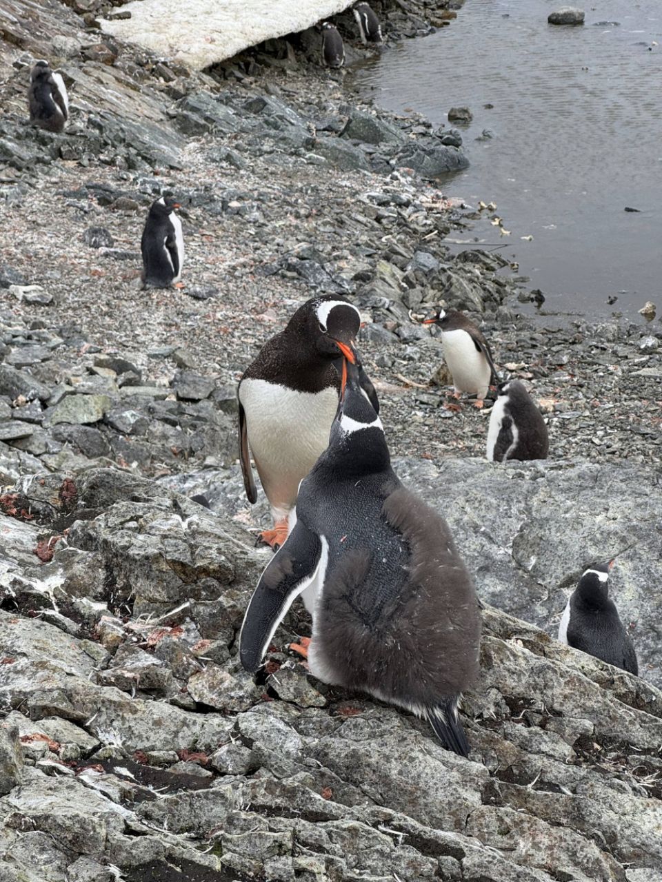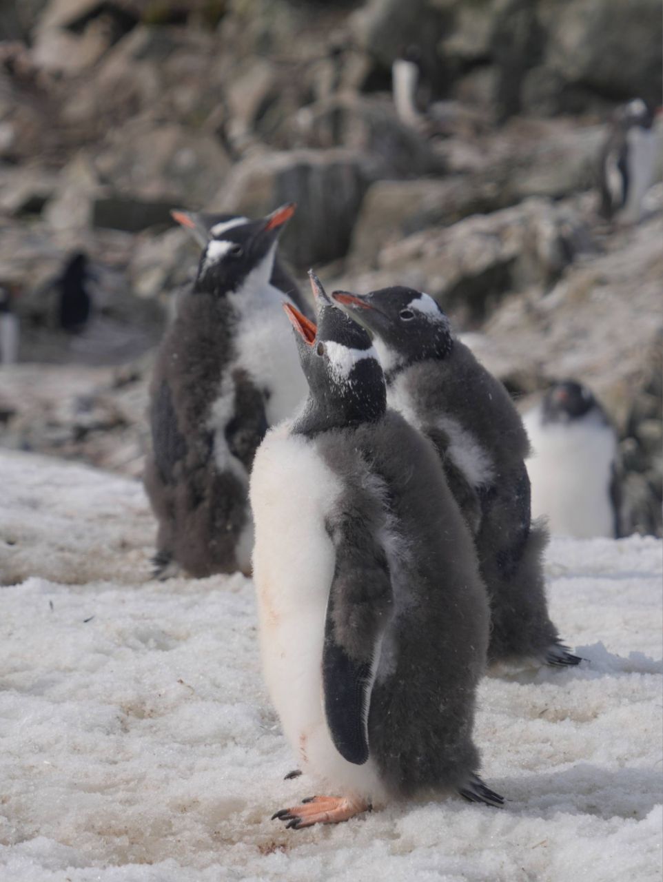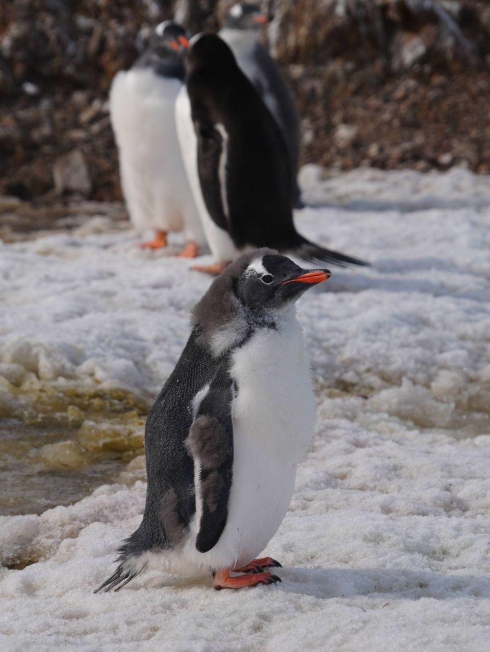 "Зараз навколо станції "Академік Вернадський" пінгвінячого пуху та пір'я більше, ніж снігу. Уже активно змінюють перший пуховий наряд на пір'я малюки, що народилися цього сезону. Після закінчення линяння вони почнуть плавати в океані та самостійно добувати собі їжу. До цього часу їх годують батьки", - йдеться у дописі.