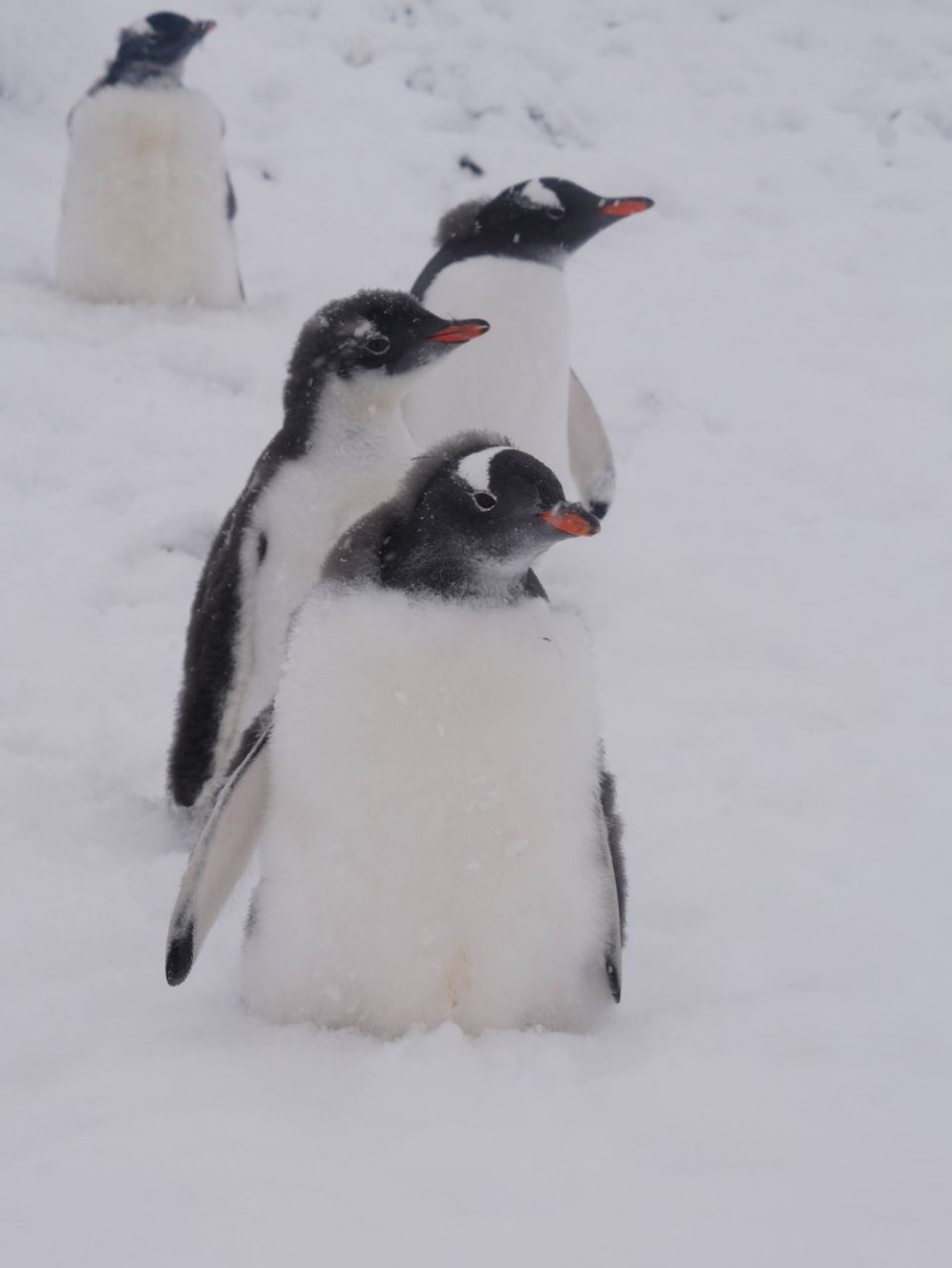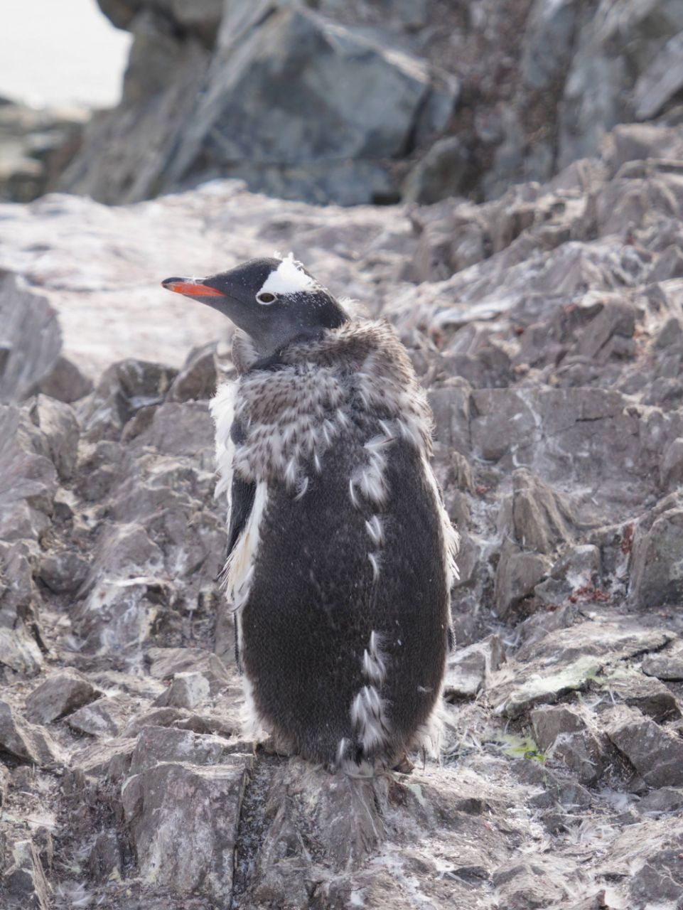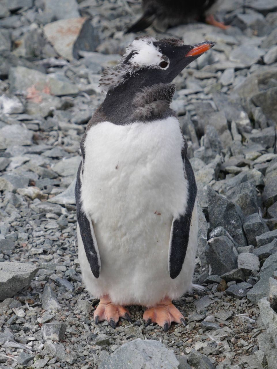 Крім того, линяють зараз і дорослі пінгвіни. На відміну від інших морських птахів, вони скидають майже все пір'я одночасно. У цей час у них свербить все тіло. Вони не можуть плавати в океані та добувати собі їжу.