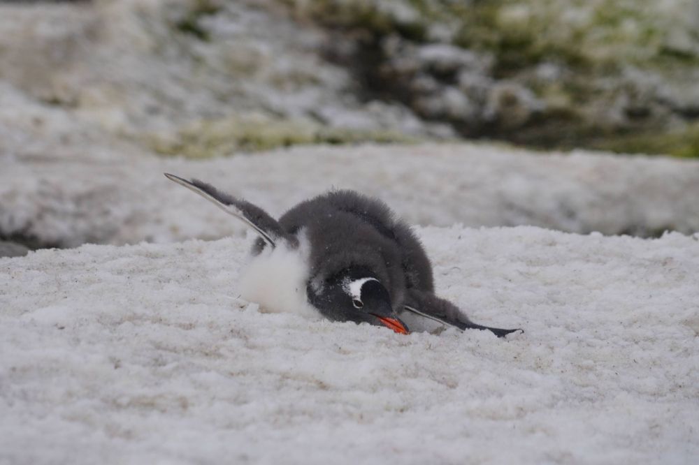 В Антарктиці завершується літо, сніговий покрив значно розтанув, а от у пінгвінів саме триває процес линяння.