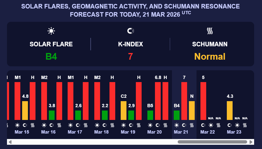 Магнітна буря 21 березня 2026-го. Фото: Мeteoagent