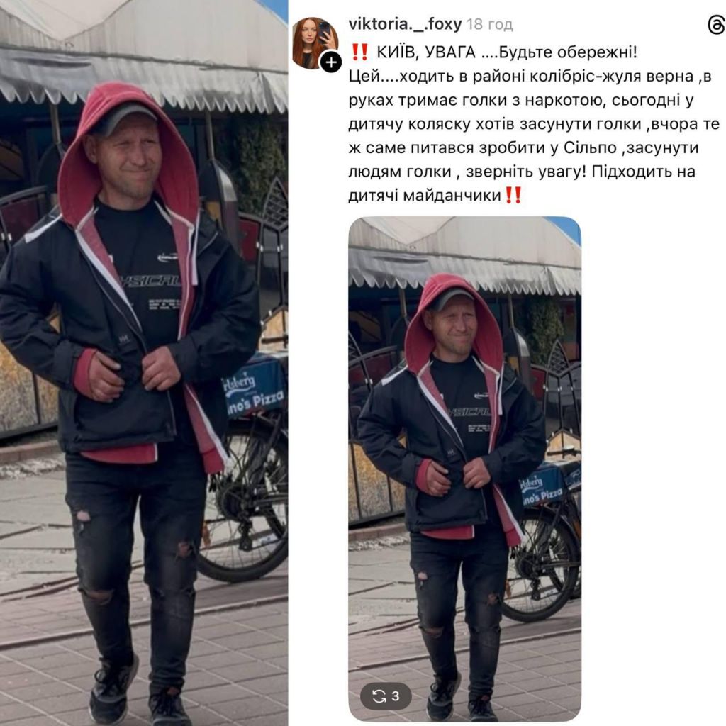 У Мережі з’явилася інформація, що у Києві чоловік намагається підсунути наркотики дітям. Він нібито підходить до дитячих майданчиків і навіть заглядає до дитячих візочків.
